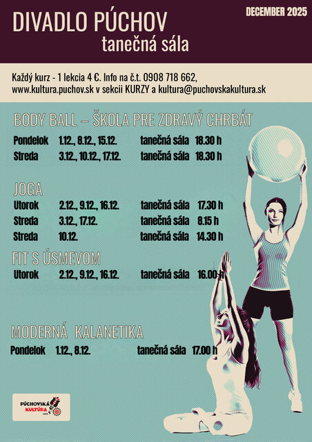 Utorok 2.12., 9.12., 16.12. tanečná sála 17.30 h