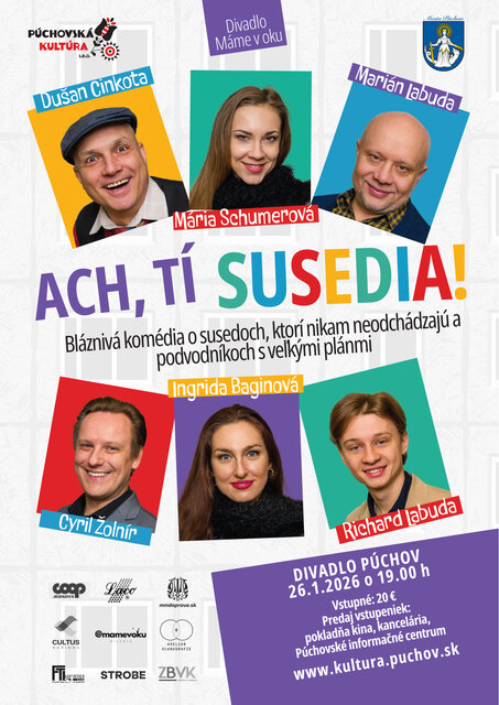Originálna autorská slovenská komédia o medzigeneračných rozdieloch a prifarbených spomienkach. O živote starom aj novom. O láske a priateľstve. A to všetko v jednom paneláku malého mesta! Dvaja dôchodci a mladý developer sa doťahujú už celé roky. Dokonca sa chystajú aj na súd, aby sa vyriešili ich nezhody. Príbeh začína, keď ich stará susedka umrie a do paneláka sa nasťahuje mladá umelkyňa, jej vnučka. Príďte sa pozrieť, ako končí starý svet a ten mladý naberá na sile! Hviezdne obsadenie, slovný aj situačný humor, hudobné variácie Teodora Majeríka a krásna scéna vytvorená scénografickým tímom Ateliéru Scénografie, pod vedením Michala Lošonského.
