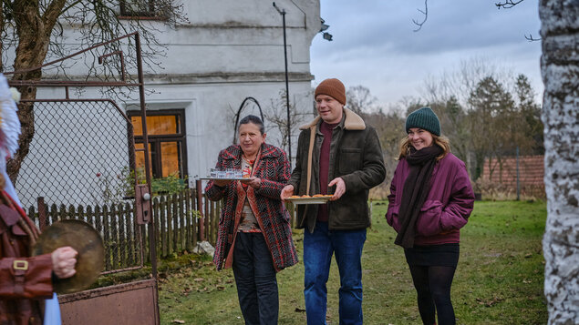 Divák sleduje hlavných hrdinov vo chvíli, keď sa im lámu životy, a je svedkom ich najväčších pochybností, strachov i nádejí. „Je to film o rozhodovaní, o tom, že nič nie je čiernobiele,“ charakterizuje Tanec s medveďom jeho hlavná predstaviteľka Pavla Gajdošíková, ktorá hrá tehotnú huslistku Lindu. Partnerom jej je Kryštof Hádek, ktorý do úlohy Marka vnáša vlastnú rodičovskú skúsenosť a osobnú citlivosť. „Sám som otec, takže som si tým procesom, či bude všetko v poriadku, tiež prešiel. A mám vo svojom okolí postihnuté deti. Mať zdravé dieťa je obrovský dar, nie samozrejmosť,“ hovorí herec, ktorý priznáva, že nakrúcanie v ňom otváralo zásadné otázky. „Nie je vôbec jednoduché stáť pred rozhodnutím, aké zažívajú naše postavy,“ dodáva.